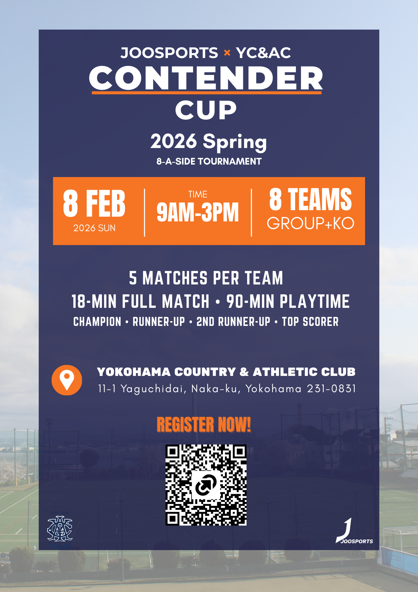 Designed for players who still love the rhythm of competition, the JOOSPORTS × YC&AC Contender Cup 2026 Spring delivers a fast, exciting one-day football experience in Yokohama.